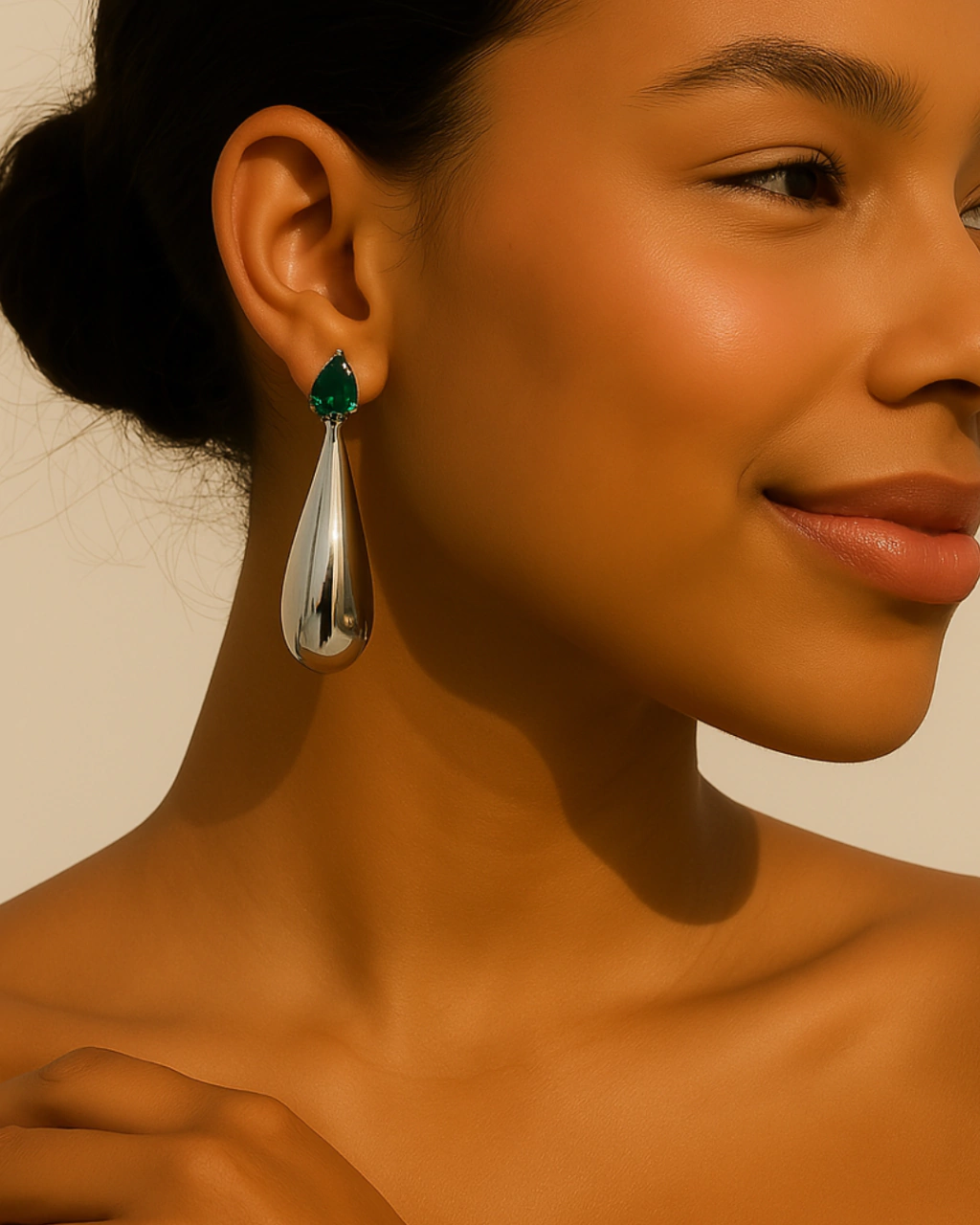 Transforme seu estilo com o Brinco Gota Esmeralda e deixe sua marca!