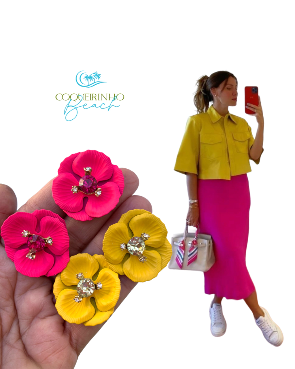 O Brinco Flor Dalia é a escolha perfeita para quem adora um toque de cor e elegância em seus acessórios. Com um design deslumbrante em formato de flor, este brinco é confeccionado em metal e adornado com uma pedra acrílica brilhante que exibe cores vibrantes, ideal para quem ama looks coloridos.