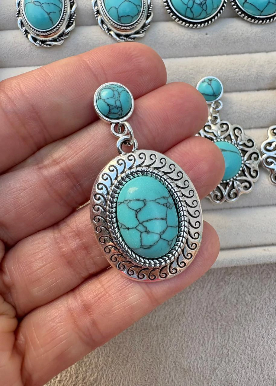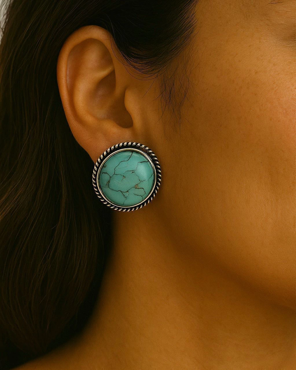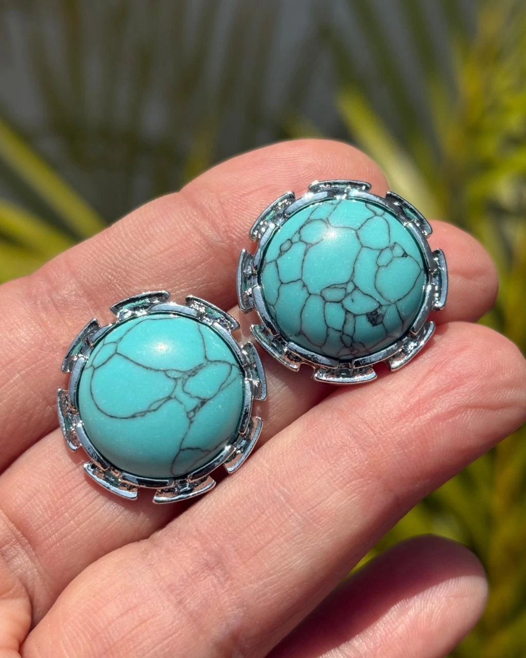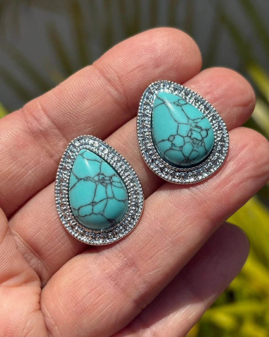 Brinco Indiano Azul Turquesa – a peça que traz a sofisticação do banho italiano com a delicadeza da pedra resinada azul, perfeita para quem busca o azul que encanta e ilumina qualquer visual.