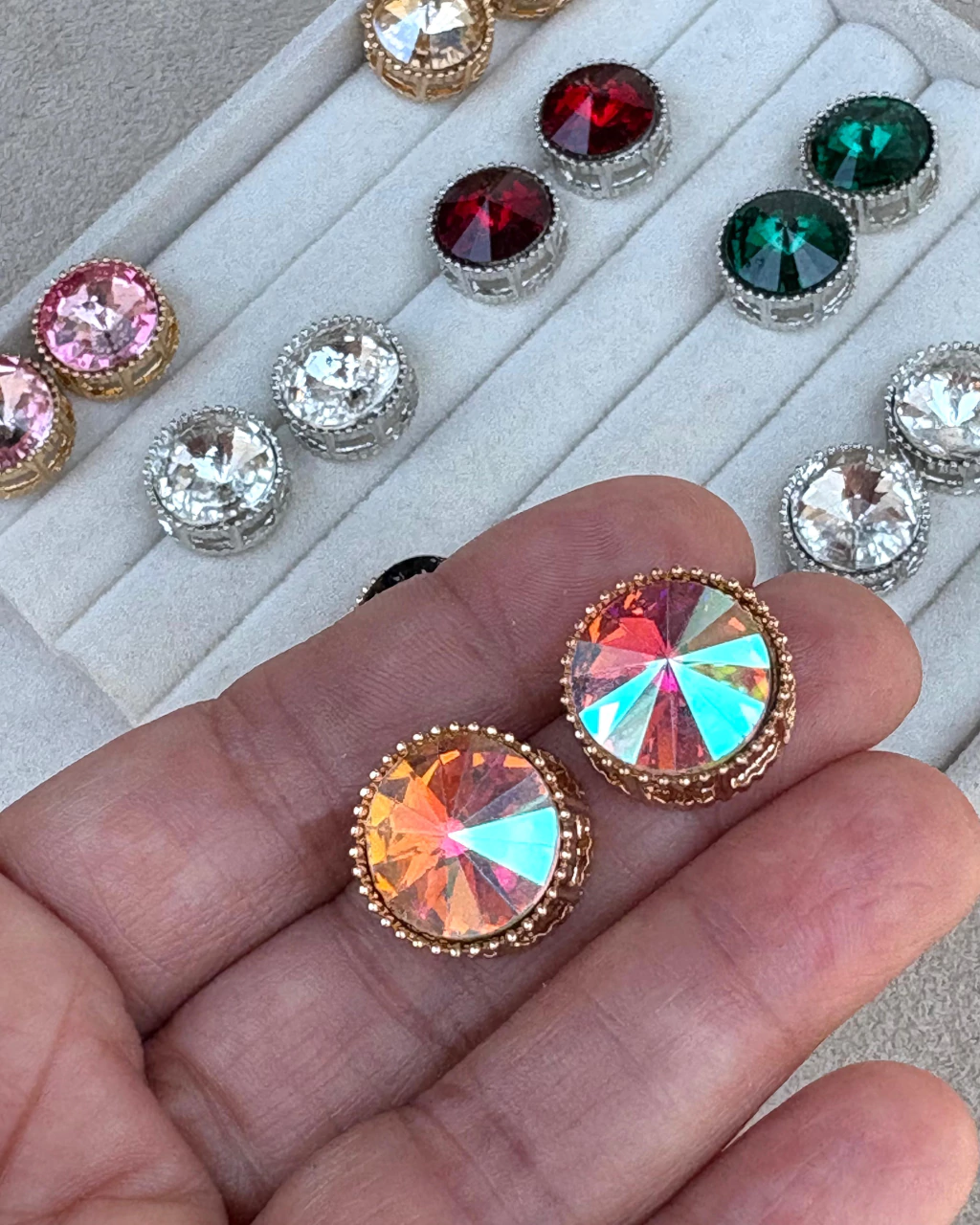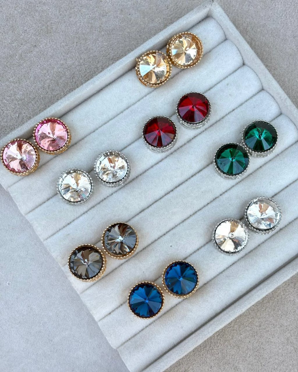 O Brinco Lumina é feito com cristais lapidados acrilico que refletem a luz de uma forma única, trazendo cor e elegância ao seu visual.