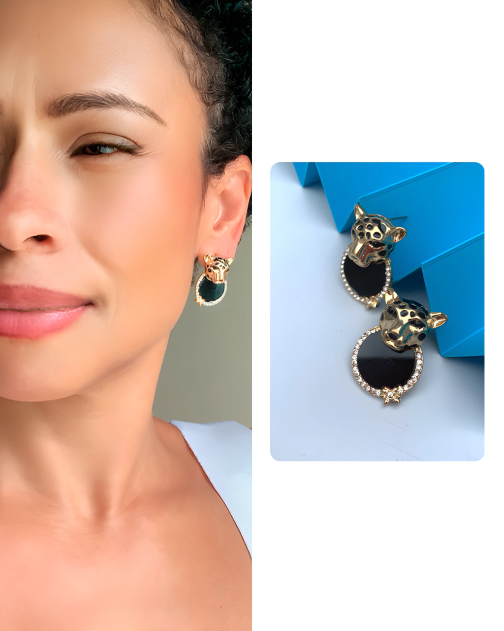 Liberte-se com estilo e mostre seu lado selvagem! Este brinco em formato de tigre dourado é a peça perfeita para quem quer arrasar. Leve e confortável, ele combina com qualquer look, desde o casual até o glamouroso.