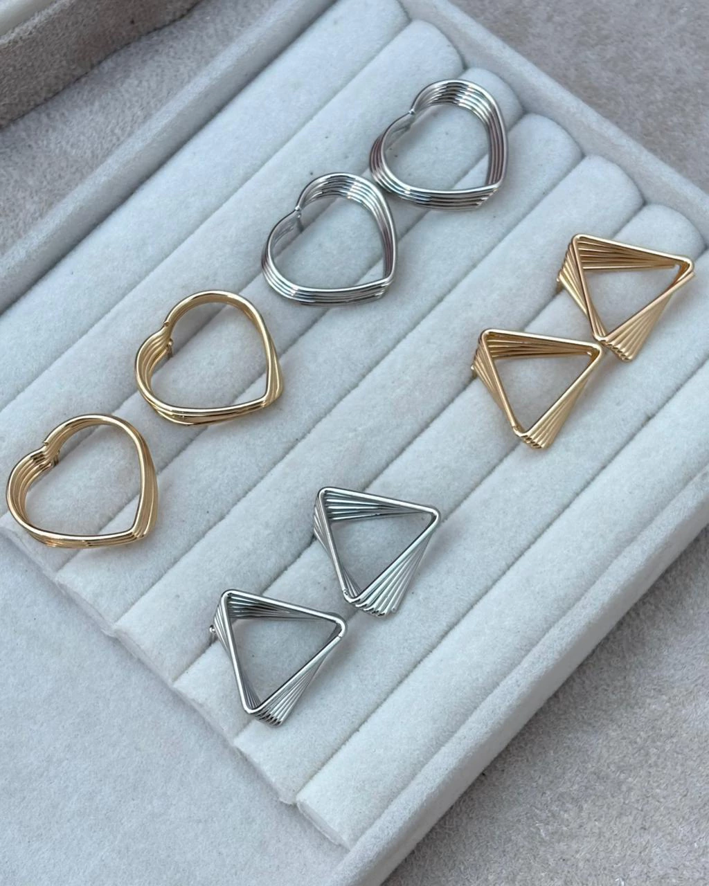 Descubra a sofisticação dos Brincos Shape Lux, onde o moderno encontra o clássico em formas que encantam. Com triângulos, corações e um toque de brilho metálico, esta coleção é perfeita para quem deseja brilhar em qualquer ocasião.