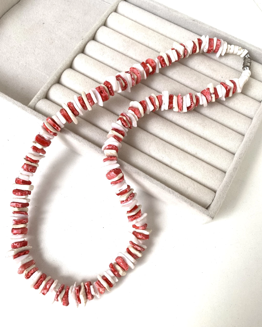Transforme seu estilo com o Colar Coral Vermelho e Branco e faça uma declaração de moda irresistível!