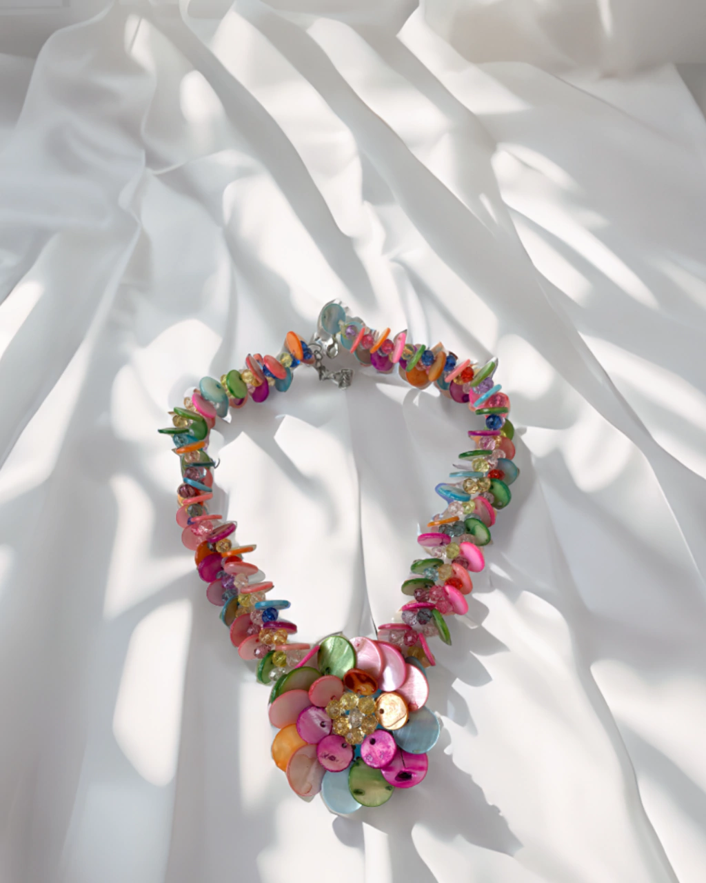 Aproveite e complemente seu estilo com o Colar Hortência em Madrepérola, uma peça única que vai encantar a todos ao seu redor!