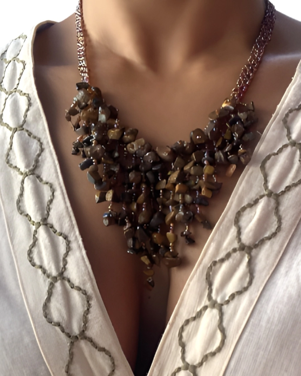 🌟 Colar Jade em Cascalho Olho de Tigre - O Toque que Faltava no seu Look! 🌟