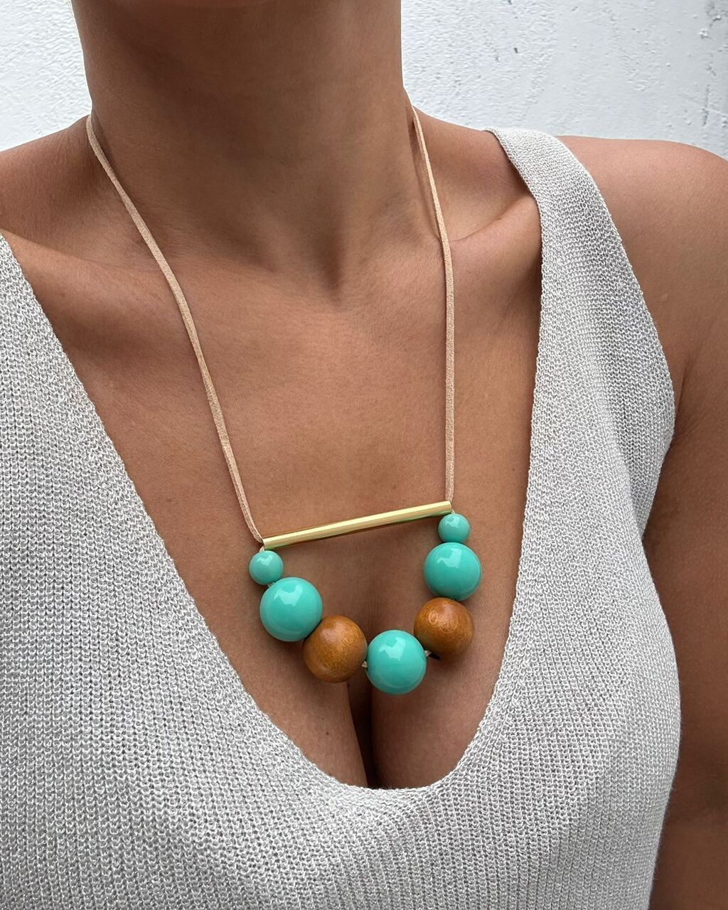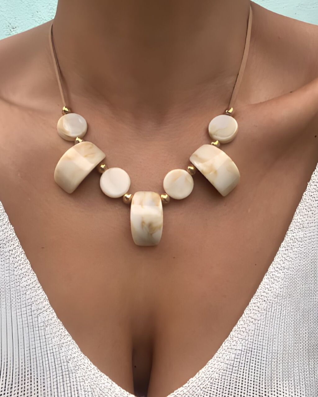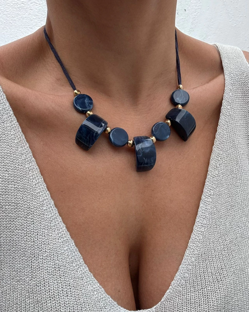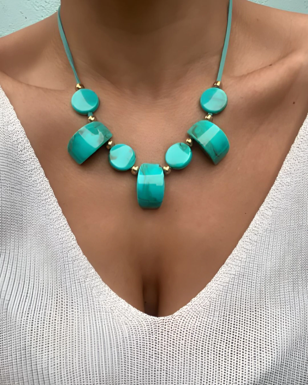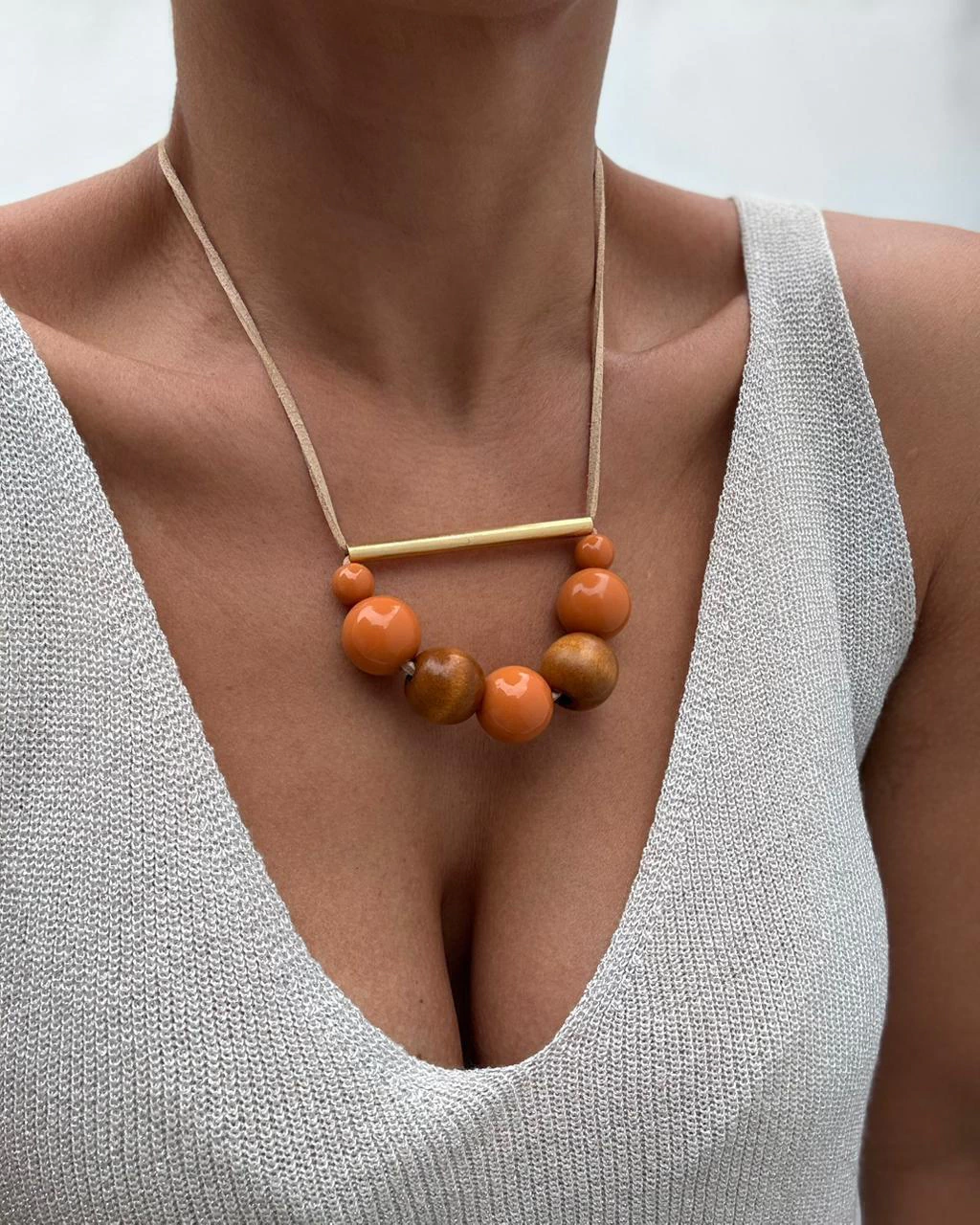 O Colar Maré Alta é uma peça versátil e estilosa, confeccionada em contas de resina mesclada e courinho, ideal para quem aprecia o estilo boho. Com seu design regulável, você pode usá-lo conforme desejar, adaptando-se a diferentes ocasiões.
